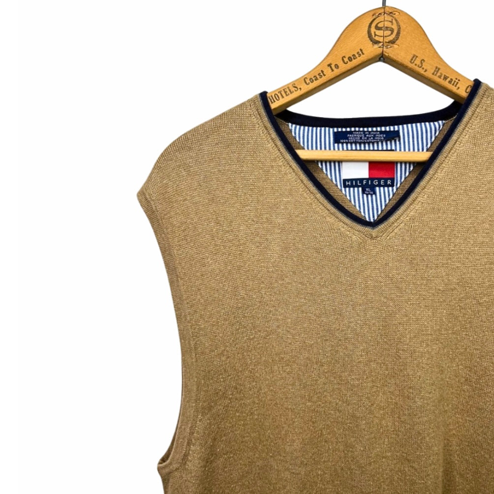 90’s Tommy Hilfiger Tan 100% Cotton V-Neck Sweater Vest Size Large