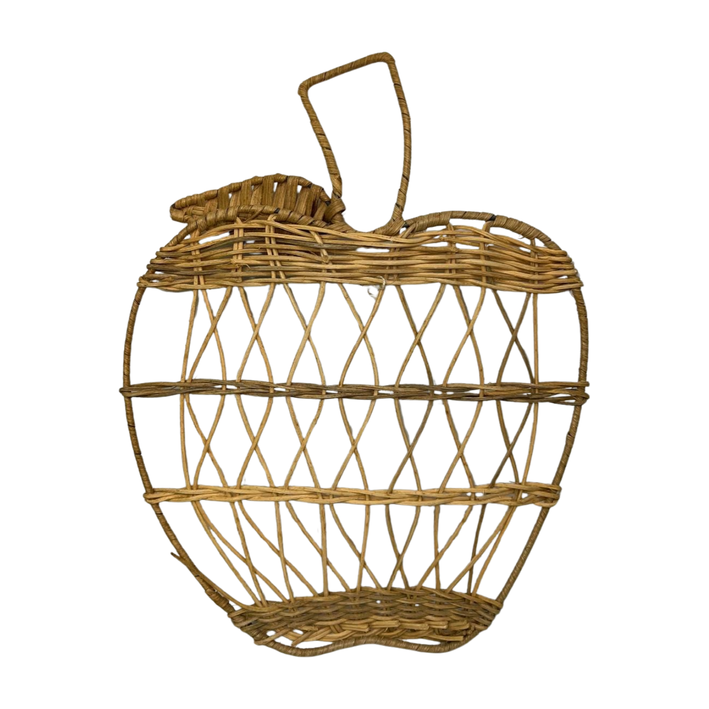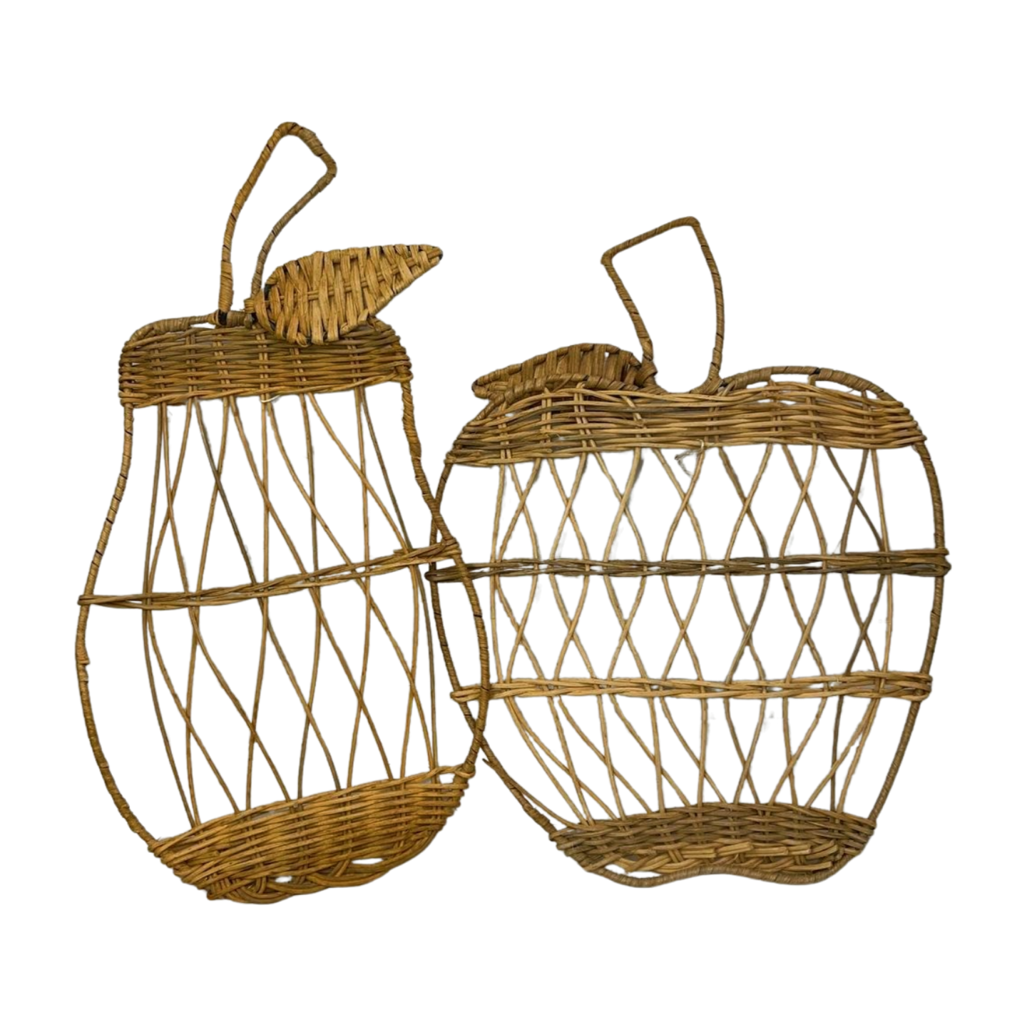 Pair of Fruit Apple & Pear Wicker Woven Rattan Wall Hanging